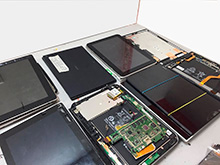 Детальная диагностика устройств, их разборка и сборка выполняется на оборудованных для этого стендах в стерильных условиях. Верстаки для осмотра и инструмент для извлечения электросхем защищены от накопления статического заряда.